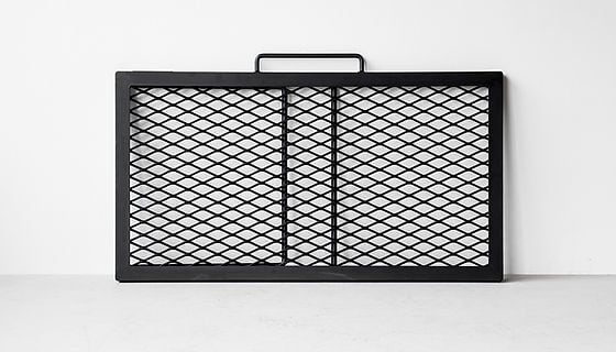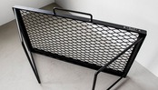 サンゾー工務店のプレートをアクセントに、鉄製メッシュ天板テーブルです